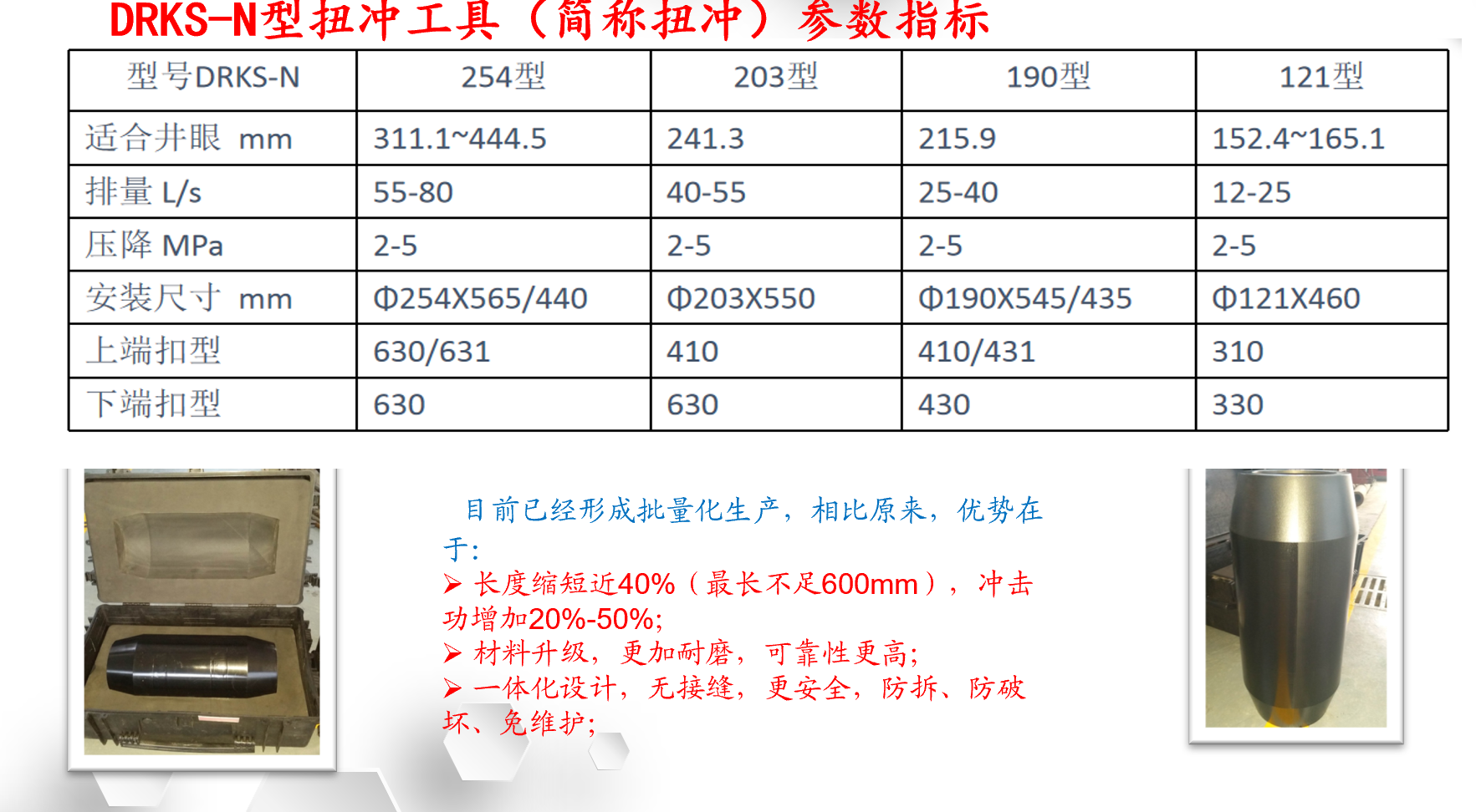 我们提倡的是一种平稳提速的理念,因此将长期致力于推广N系列扭冲工具。它完全能够成为PDC钻头的黄金搭档,在钻进过程中能够实现钻井参数与井底工况的再平衡,使得整个钻井系统安全、平稳而快速。
